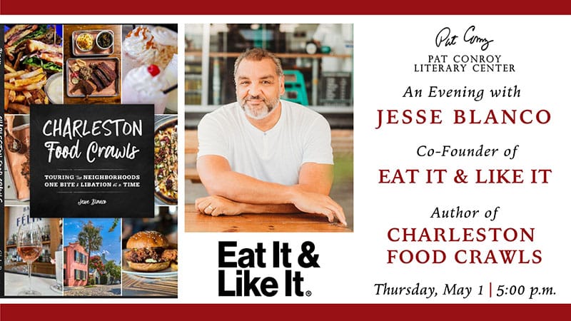 The nonprofit Pat Conroy Literary Center will host an evening of with Eat It and Like It co-founder and host Jesse Blanco, author of Charleston Food Crawls on Thursday, May 1, at 5:00 p.m., at the Conroy Center (601 Bladen St., Beaufort). Free and open to the public. Books will be available for sale and signing. Seating is limited: please call to reserve in advance: 843-379-7025.