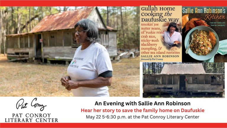 Sallie Ann will regale attendees with stories of her time on Daufuskie and her time with Pat Conroy. In addition, her latest project is to help her and her family save their historical Gullah house on Daufuskie Island. The building was built around the 1930’s and is in need of restoration. This house and others are a part of the island history. Sallie, her grandmother, mother and many other were born in this house.