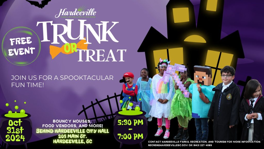 Celebrate Halloween with us at the 2024 Hardeeville Trunk-or-Treat event—it’s going to be a frightfully fabulous evening! Don’t miss out on this fantastic opportunity to have fun, make memories, and dive into the Halloween spirit.
