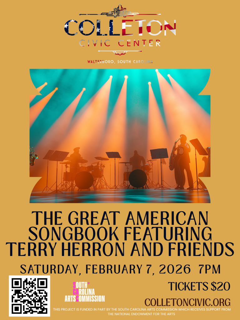 Come enjoy an unforgettable evening of your favorite American standards featuring hits from Sinatra, Buble, Broadway, and more. Tickets $20 available at https://colletoncivic.ticketspice.com/the-great-american-songbook-featuring-terry-herron-and-friends the Civic Center office, and The Colleton Museum and Farmers Market.