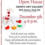 Come out to the Edisto Art Gallery to celebrate Artists Sunday, a worldwide event on the Sunday between Black Friday and Cyber Monday. Edisot Art Gallery will be open from 10 AM to 5 PM and will be serving refreshments while showcasing their new small works show.
